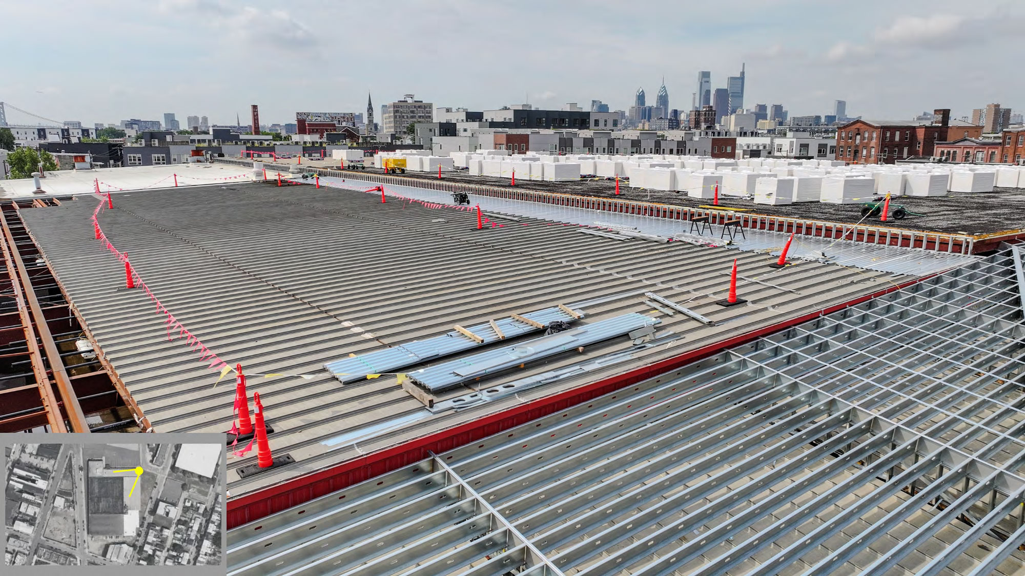 Construction of a new loading dock roof structure at existing distribution warehouse located on North 5th Street in Kensington, PA.